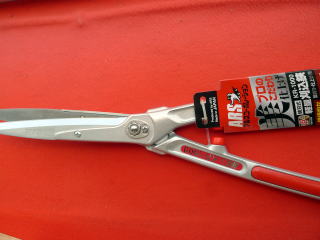![]() 裏鋼付ミニ刈り込み鋏 刃渡り15p 全長約56p 7.000円 |