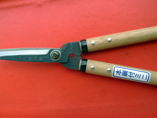 ![]() 三重桑名の伝統工芸士 広房作 炭火鍛造刈り込み鋏 プロの植木屋さんに好評 の最高級品です 使い始めは少し大事に 無理をしないこと 税込み価格 32,000円 |